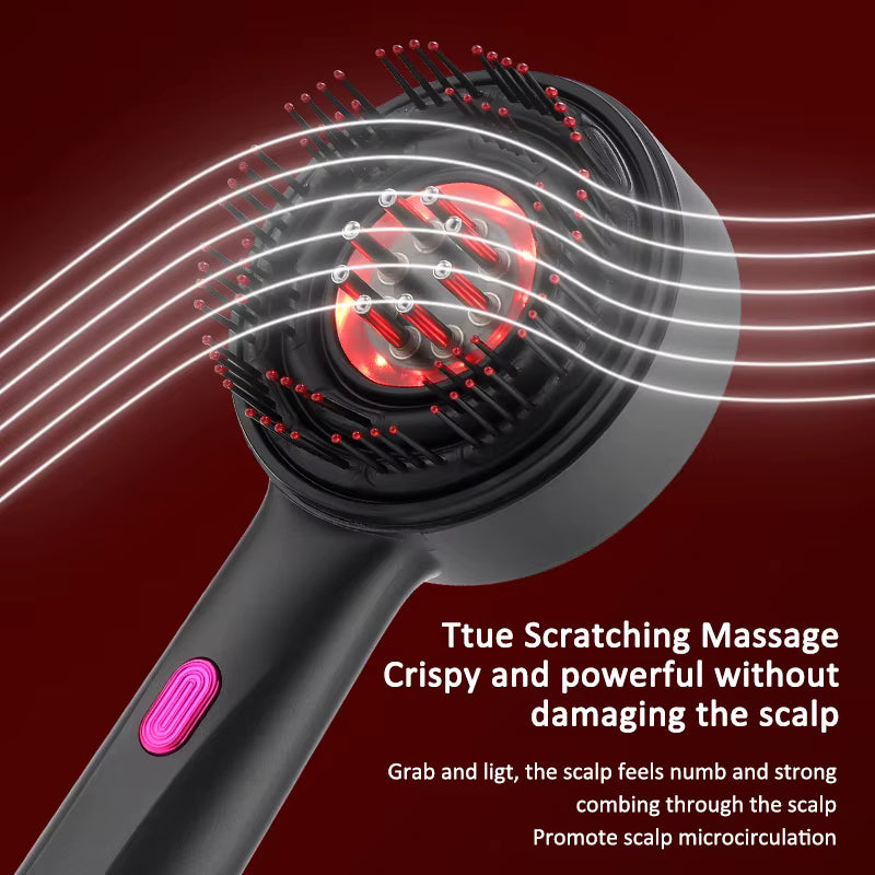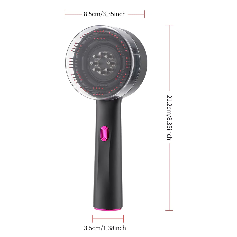 Deze elektrische hoofdmassagekam combineert rood licht, vibratie en zachte massagepunten in één compact apparaat. Het rood licht ondersteunt de natuurlijke balans van de hoofdhuid, terwijl de 72 afgeronde massage-tanden spanning verminderen en een rustgevende drukpuntmassage geven. Dankzij het ingebouwde vloeistoftankje verdeelt de kam serums en oliën gelijkmatig, waardoor je haarverzorging wordt versterkt tijdens het masseren.